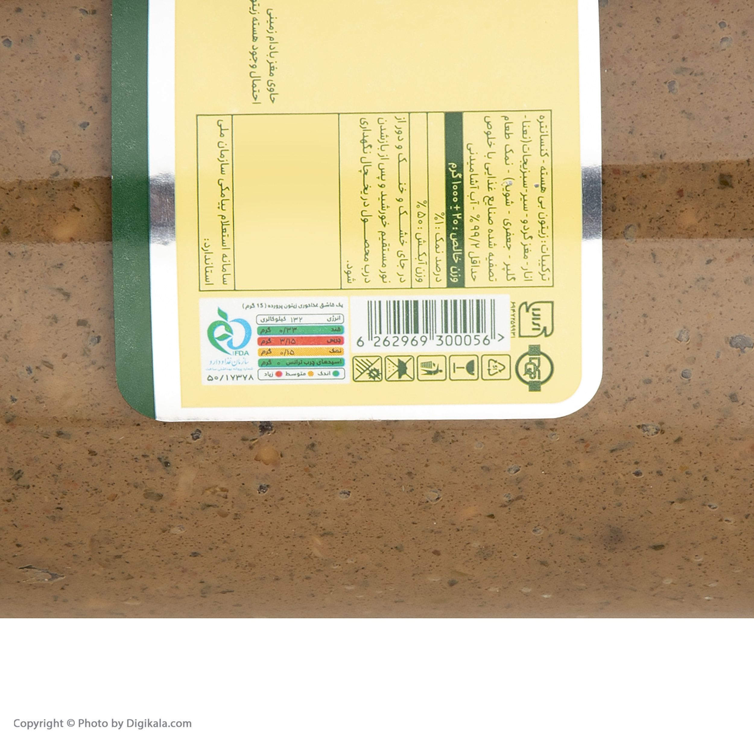 - ارزش غذایی در یک قاشق غذاخوری زیتون پرورده (15 گرم): - انرژی : 132 کیلوکالری - قند : 0.33 گرم - چربی : 15 گرم - نمک: 0.15 گرم - فاقد اسید چرب ترانس - تقویت کننده سیستم ایمنی بدن - سرشار از ریـز مغـذی های مورد نیـاز بـدن - تقویت کننده معده و کمک به هضم غذا - محافظت کننده در برابر بیماری های قلبـی - تصفیـه کننده خون و ضـد انسداد عروق - سرشـار از آنتـی اکسیـدان - آرامش بخش و تقویت کننده اعصاب