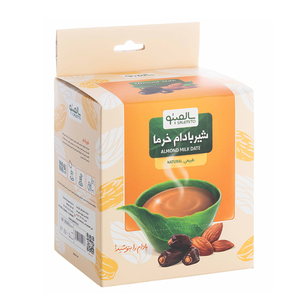 شیربادام خرما سالمیتو یک نوشیدنی گیاهی با ترکیبی از پودر شیربادام و پودر خرما که بصورت کاملا طبیعی و بدون مواد افزودنی فرموله شده است.نوشیدنی مقوی و سالم با طعم بادام واقعی و جایگزین مناسب شیرگاو با کالری کمتر ولی مواد مغذی بیشتر از قبیل کلسیم˛ ویتامینE˛ویتامین ها و آنتی اکسیدان.جهت سهولت مصرف، این محصول در ساشه های 10 گرمی( تک نفره) تهیه گردیده که در یک فنجان آب داغ حل شده و قابل مصرف است.نحوه ارائه محصول به بازار بصورت جعبه حاوی 10 عدد ساشه می باشد. پس با خرید یک جعبه، شما هرزمان و هرکجا که بخواهید می توانید شیربادام میل کنید. این محصول نیاز به نگهداری در یخچال ندارد.